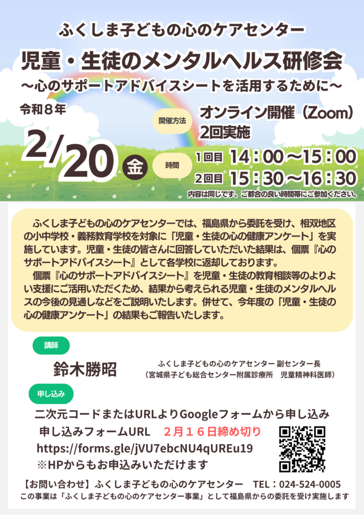児童・生徒のメンタルヘルス研修会-心のサポートアドバイスシートを活用するために-の開催のお知らせ